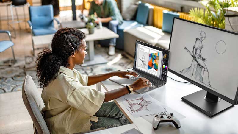 Además, incluye dos puertos USB Type-C y HDMI 2.1, un lector de tarjetas MicroSD, lo que mantiene a los creadores conectados a pantallas, impresoras y otros periféricos.
